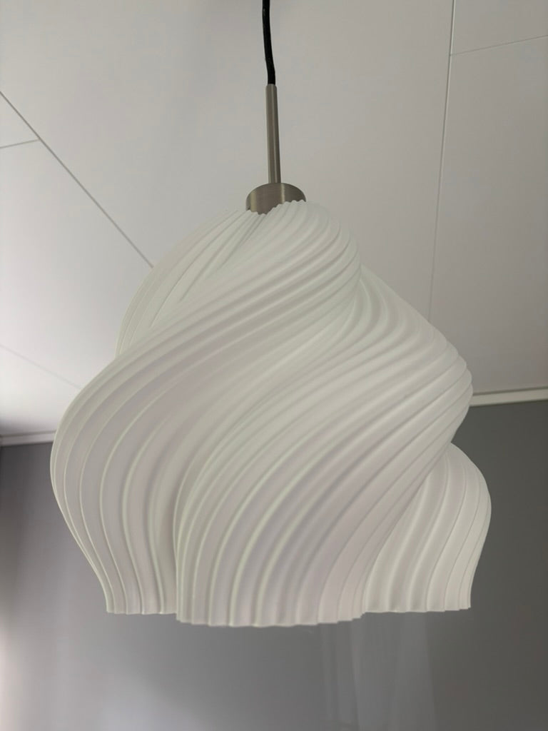 Skapa en modern och skandinavisk känsla i ditt hem med Lampskärm Aurora. Den unika, 3D-printade vridna designen ger en skulptural och elegant form som sprider ett mjukt och behagligt ljus. Perfekt för dig som vill kombinera innovation med nordisk minimalism.